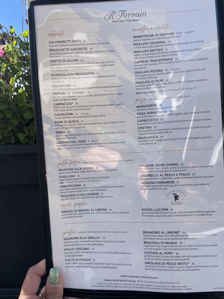 Introducing Il Fornaio, a classy yet casual restaurant located in Carmel-by-the-Sea, CA, offering a variety of Italian dishes. Known for its fast and attentive service, Il Fornaio caters to families with kids, providing a kids' menu and convenient amenities like free Wi-Fi and outdoor seating. The menu boasts vegan and vegetarian options, along with an extensive selection of pasta dishes and delicious seafood choices. Customer favorites include the bolognese pasta and the afogatto dessert. With a full bar, happy hour specials, and a welcoming ambiance, Il Fornaio is the perfect spot for a cozy dining experience or a night cap in Carmel. Don't miss out on their signature cocktails and impeccable service. Visit Il Fornaio for a memorable Italian dining experience.